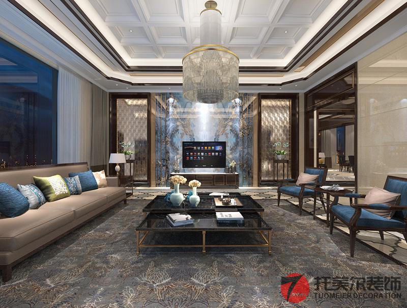 領(lǐng)秀濱江頂樓復(fù)式新中式效果裝修設(shè)計(jì)效果圖