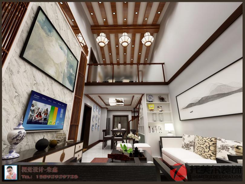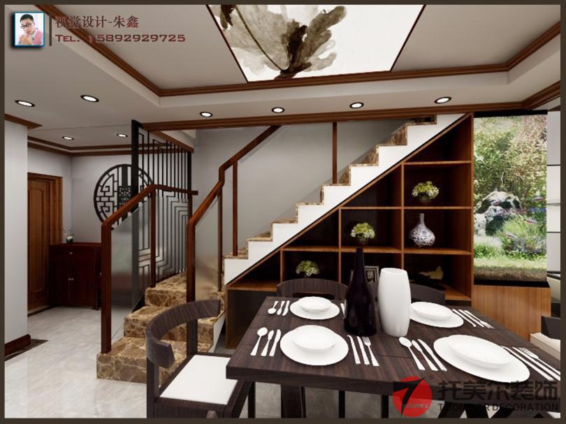| 案例說明: 業(yè)主特別喜歡中式元素,這個戶型是個小戶型,樓梯的設(shè)計特別重要,一個是要合理利用空間,二又不要影響美觀。 |