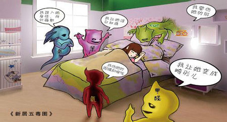 家居裝修中產(chǎn)生的污染物主要有5種: 甲醛、苯、氨氣、放射性氡、TVOC(總揮發(fā)性有機(jī)化合物)。甲醛和苯是其中最常見、危害最大的兩類污染物(圖片來源于網(wǎng)絡(luò))